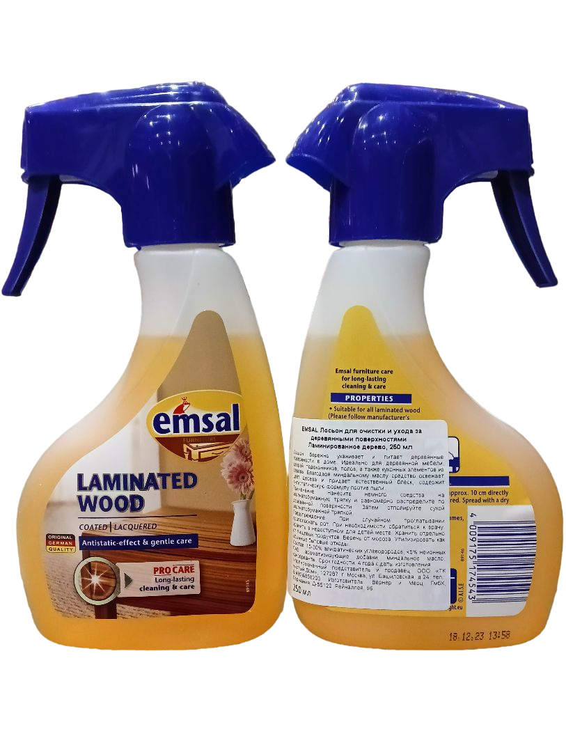Лосьон для мебели Emsal с антистатической формулой обеспечивает щадящую очистку и уход за всей деревянной мебелью.