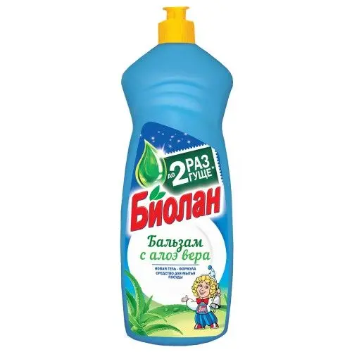 Моющее средство для посуды Биолан эффективно удаляет жир, хорошо пенится и легко смывается водой, не оставляя разводов и придавая посуде блеск.