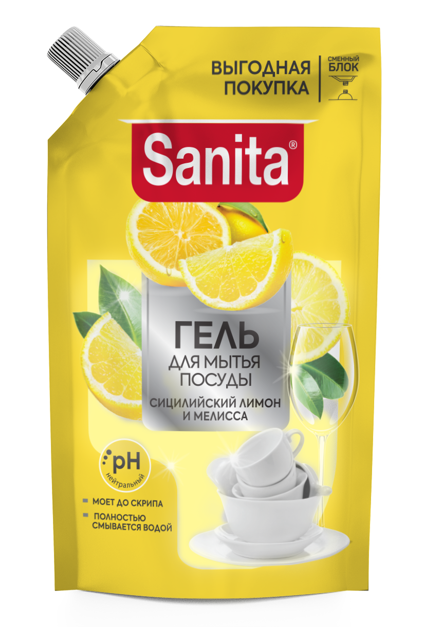 Sanita гель для мытья посуды сицилийский лимон и мелисса дой пак 900 г