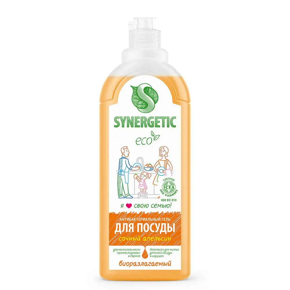 Биоразлагаемый концентрированный гель для посуды с антибактериальным эффектом SYNERGETIC - это экологичное, безопасное и эффективное средство для мытья всех видов посуды, в том числе детской, кухонного инвентаря и детских игрушек от любых видов загрязнений. Он не оставляет следов на посуде. Мягкие биоразлагаемые тензиды из растительного масла обеспечивают хорошее пенообразование и эффективно удаляют жир и запахи даже в холодной воде. Глицерин растительного происхождения в составе средства защищает кожу рук от сухости и раздражения. Гипоаллергенная парфюмерная композиция с эфирными маслами апельсина, померанца, петитгрейна, мандарина и бергамота придает средству свежий и приятный аромат. Гель дерматологически протестирован в Европе. Международный экологический сертификат ICEA подтверждает биоразлагаемость, безопасность и эффективность средства. Биоразлагаемые компоненты безопасны для природы и человека и не вредят микрофлоре септических установок при использовании средства в соответствии со способом применения.