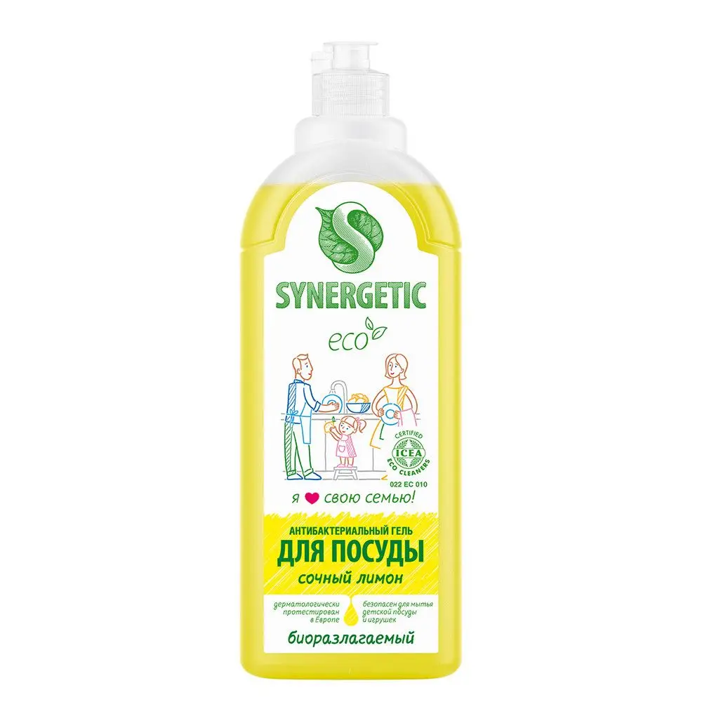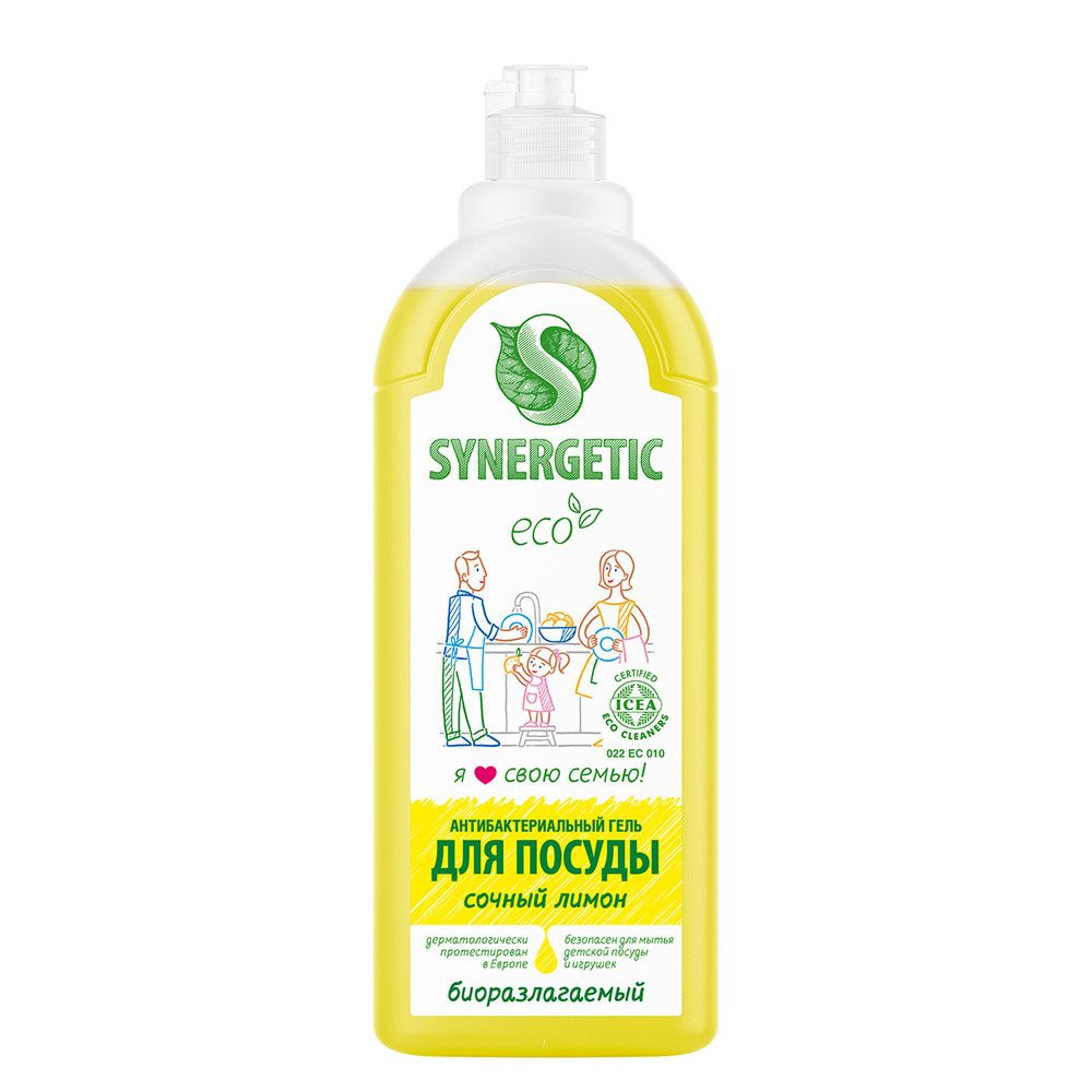 Биоразлагаемый концентрированный гель для посуды с антибактериальным эффектом SYNERGETIC - это экологичное, безопасное и эффективное средство для мытья всех видов посуды, в том числе детской, кухонного инвентаря и детских игрушек от любых видов загрязнений. Он не оставляет следов на посуде. Мягкие биоразлагаемые тензиды из растительного масла обеспечивают хорошее пенообразование и эффективно удаляют жир и запахи даже в холодной воде. Глицерин растительного происхождения в составе средства защищает кожу рук от сухости и раздражения. Гипоаллергенная парфюмерная композиция на основе эфирных масел лимона, померанца, петитгрейна, лемонграсса и лайма придает средству свежий и приятный аромат. Гель дерматологически протестирован в Европе. Международный экологический сертификат ICEA подтверждает биоразлагаемость, безопасность и эффективность средства. Биоразлагаемые компоненты безопасны для природы и человека и не вредят микрофлоре септических установок при использовании средства в соответствии со способом применения.