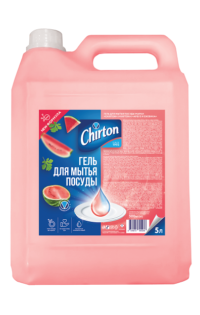 Гель для мытья посуды марки "Chirton" (Чиртон).Специальное чистящее средство предназначенное для мытья посуды как в горячей так и в холодной воде.Быстро и эффектично растворяет жир ,смывает остатки пищи и устраняет запахи. Придает посуде блеск. Полностью смывается чистой водой.Не сушит кожу рук.Имеет приятный аромат.