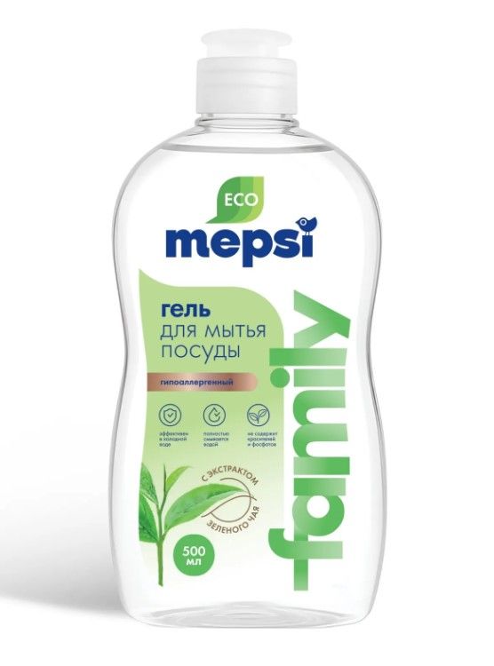 Mepsi гель для мытья посуды с экстрактом зеленого чая family 500 мл