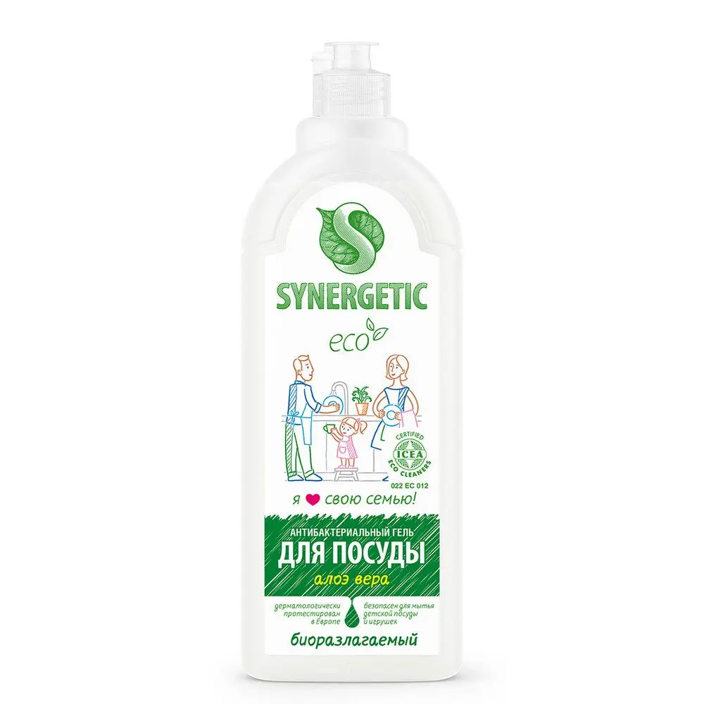 Биоразлагаемый концентрированный гель для посуды с антибактериальным эффектом SYNERGETIC - это экологичное, безопасное и эффективное средство для мытья всех видов посуды, в том числе детской, кухонного инвентаря и детских игрушек от любых видов загрязнений. Он не оставляет следов на посуде. Мягкие биоразлагаемые тензиды из растительного масла обеспечивают хорошее пенообразование и эффективно удаляют жир и запахи даже в холодной воде. Глицерин растительного происхождения в составе средства защищает кожу рук от сухости и раздражения. Гипоаллергенная парфюмерная композиция на основе эфирных масел аира, гальбанума, мяты, шалфея, лемонграсса, муската придает средству свежий и приятный аромат. Гель дерматологически протестирован в Европе. Международный экологический сертификат ICEA подтверждает биоразлагаемость, безопасность и эффективность средства. Биоразлагаемые компоненты безопасны для природы и человека и не вредят микрофлоре септических установок при использовании средства в соответствии со способом применения.