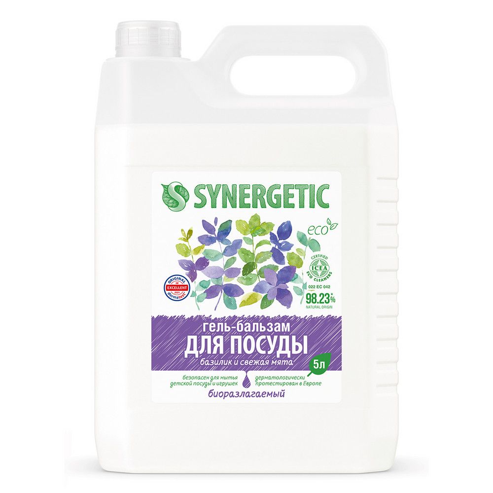 Synergetic биоразлагаемый гель бальзам для мытья посуды и детских игрушек базилик и свежая мята 5 л