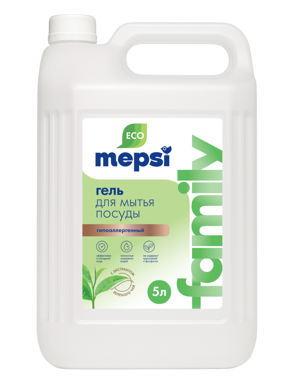 Mepsi гель для мытья посуды с экстрактом зеленого чая family 5 л