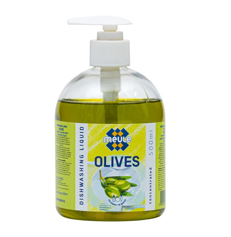 Meule 500 -Концентрированное средство для мытья обычной и детской посуды, овощей и фруктов ОЛИВА.