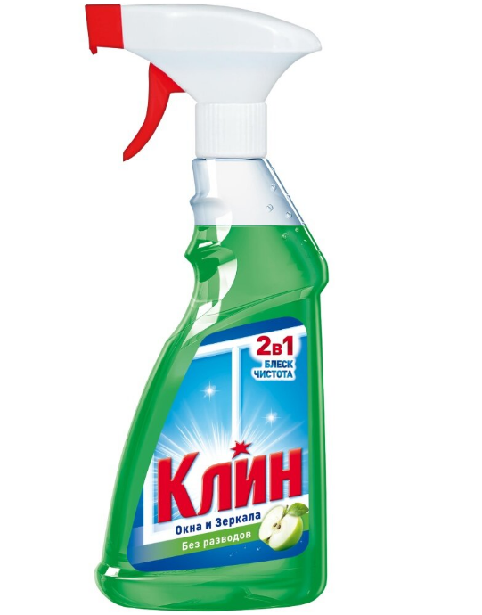 Средство Клин на основе изопропилового спирта качественно очищает стекла от грязи, пыли, не оставляет разводов.