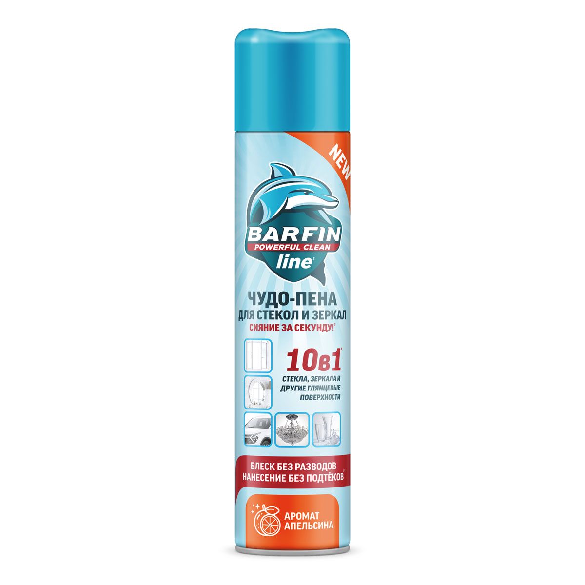 BARFIN чудо пена средство чистящее для стекол и зеркал с ароматом апельсина 300 мл