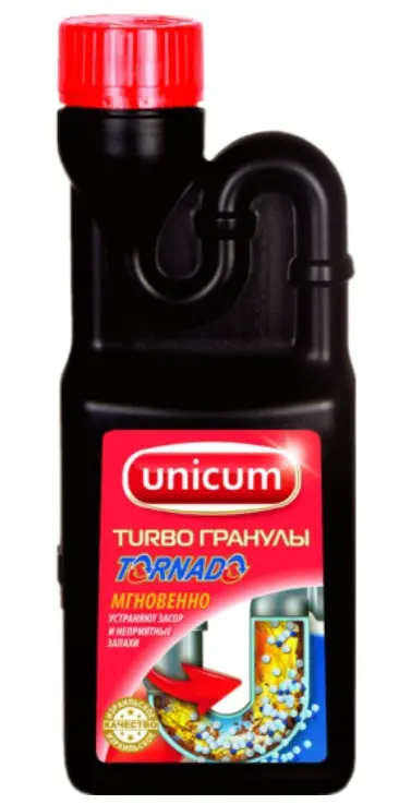 Гранулы для прочистки труб UNICUM Удобная минутка Турбо - одно из лучших средств на рынке. Суперэффективная формула мгновенно очищает сливные трубы даже от самых сильных засоров. Используйте средство строго по назначению, в соответствии со способом применения, соблюдая меры предосторожности.