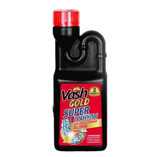Средство для прочистки труб VASH GOLD Super гранулированное, от засоров, 600 гр 307338 мгновенно очищает сливные трубы даже от самых сильных засоров. Средство действует немедленно, устраняет жиросодержащие засоры, отложения, неприятные запахи и растворяет волосы.