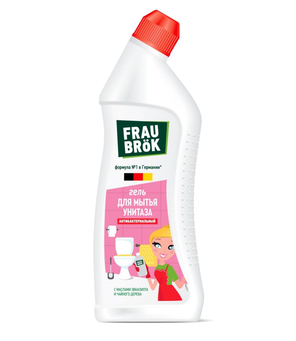 Привет, я – фрау Брок! И я в уборке знаю толк. Мытье унитаза – неприятная рутина? Вовсе нет! Используй гель для унитаза Frau Brök. Его безопасная* рецептура с добавлением проверенных немецких компонентов в два счета расправится с ржавчиной, известковым налетом и другими загрязнениями. А масла чайного дерева и эвкалипта обеспечивают антибактериальный эффект, устраняют неприятные запахи и дарят ощущение свежести. Блестящий результат всего за пару минут! FRAU BRÖK - и уборка в удовольствие!