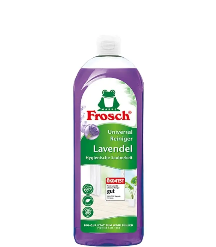 Универсальный очиститель Лаванда Frosch эффективно удаляет жир и грязь, не оставляя остатков и обеспечивая гигиеническую чистоту.