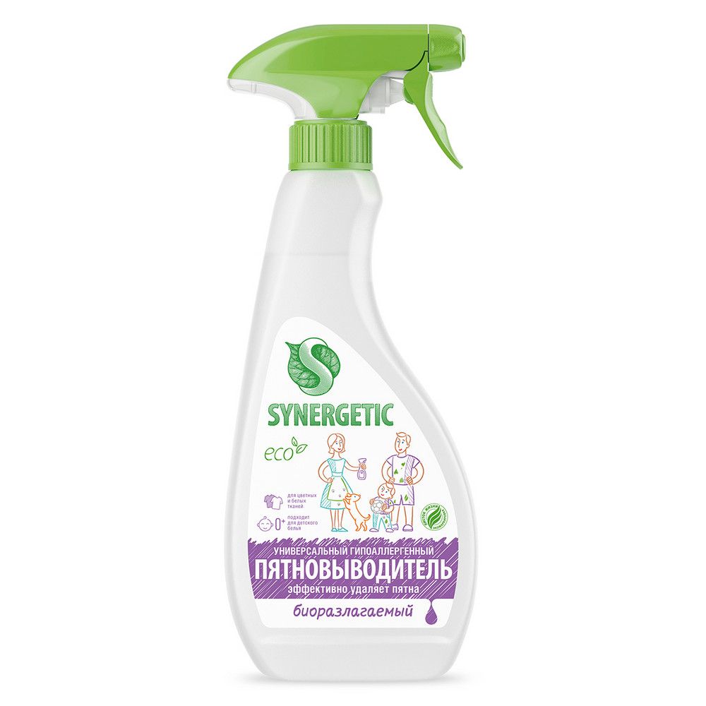 Биоразлагаемый гипоаллергенный пятновыводитель для предварительной обработки пятен SYNERGETIC - универсальное средство для эффективного удаления загрязнений и трудновыводимых пятен с тканей. Комбинация пяти видов энзимов (протеаза, амилаза, липаза, маннаназа, целлюлаза) и растительных ПАВ эффективно удаляет въевшиеся загрязнения и застарелые пятна от масла, жира, какао, ягод, травы, чернил, кофе, вина, крови на белом и цветном белье из натуральных и синтетических тканей. Гипоаллергенный пятновыводитель подходит для детского белья 0+ и одежды людей с чувствительной кожей, а также для деликатных тканей. Средство полностью выполаскивается из волокон и не остается на одежде. Не содержит красителей и ароматизаторов. Биоразлагаемый пятновыводитель безопасен для септических установок. Попадая в среду септика, средство «понятно» для микроорганизмов и без труда распадается на простые соединения. Гипоаллергенный пятновыводитель имеет экомаркировку "Листок жизни". Этот знак на упаковке - гарантия экологической безопасности продукта для человека и окружающей среды. Флакон с распылителем очень экономичен, удобен при использовании и идеально подходит для предварительной обработки пятен.