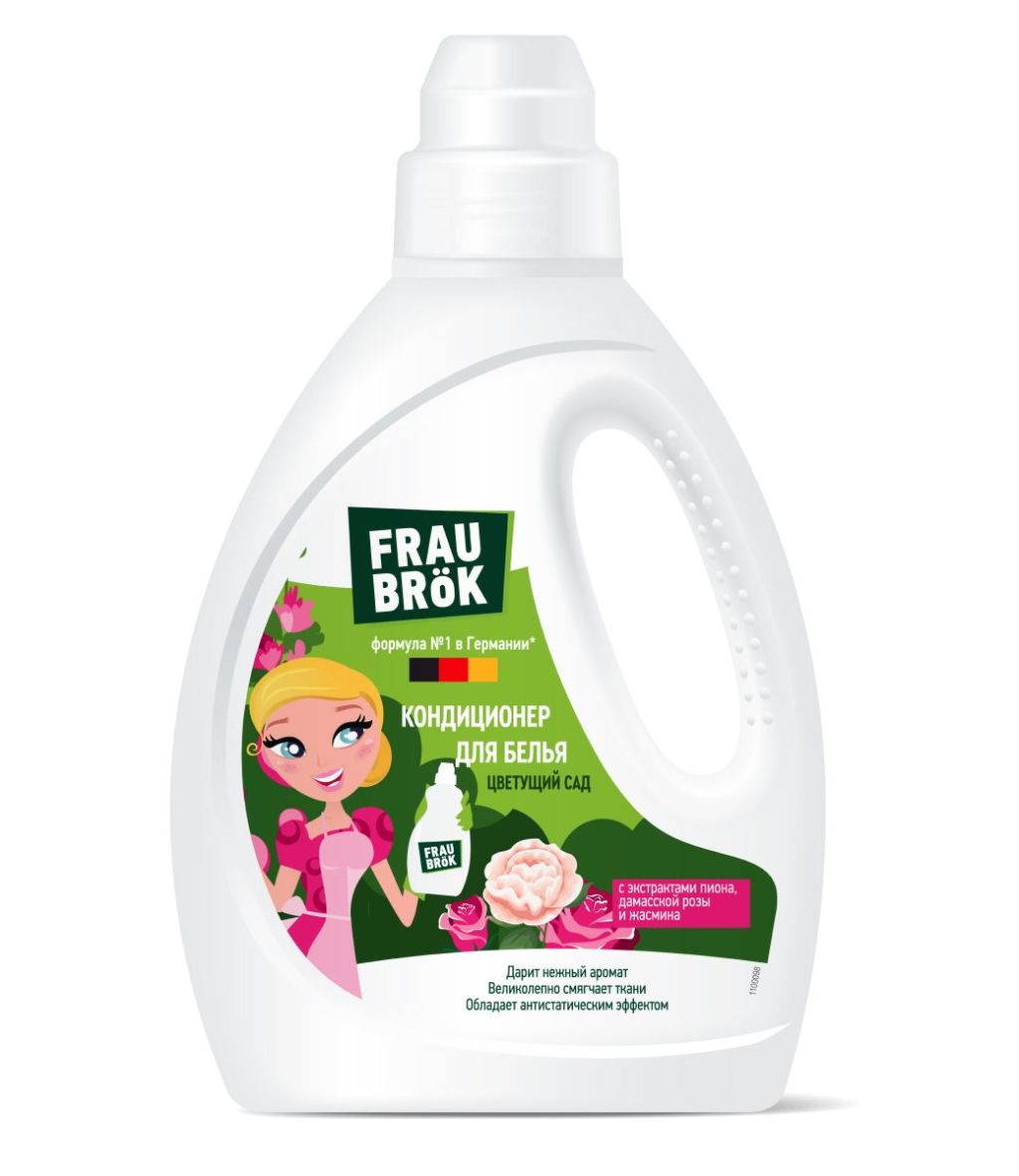 Привет, я – фрау Брок! И я в уборке знаю толк. Уход за любимыми вещами может быть простым и приятным. Особенно если у тебя есть кондиционер для белья Цветущий сад. Его безопасная* рецептура с добавлением эффективных немецких компонентов обеспечит твоей одежде достойный уход. Кондиционер помогает сохранить цвет тканей ярким, смягчает их, делает глажку очень быстрой и снимает электростатику. А композиция из нот пиона, дамасской розы и жасмина дарит одежде свежесть и аромат цветущего летнего сада. FRAU BRÖK - и стирка в удовольствие! Проверим?