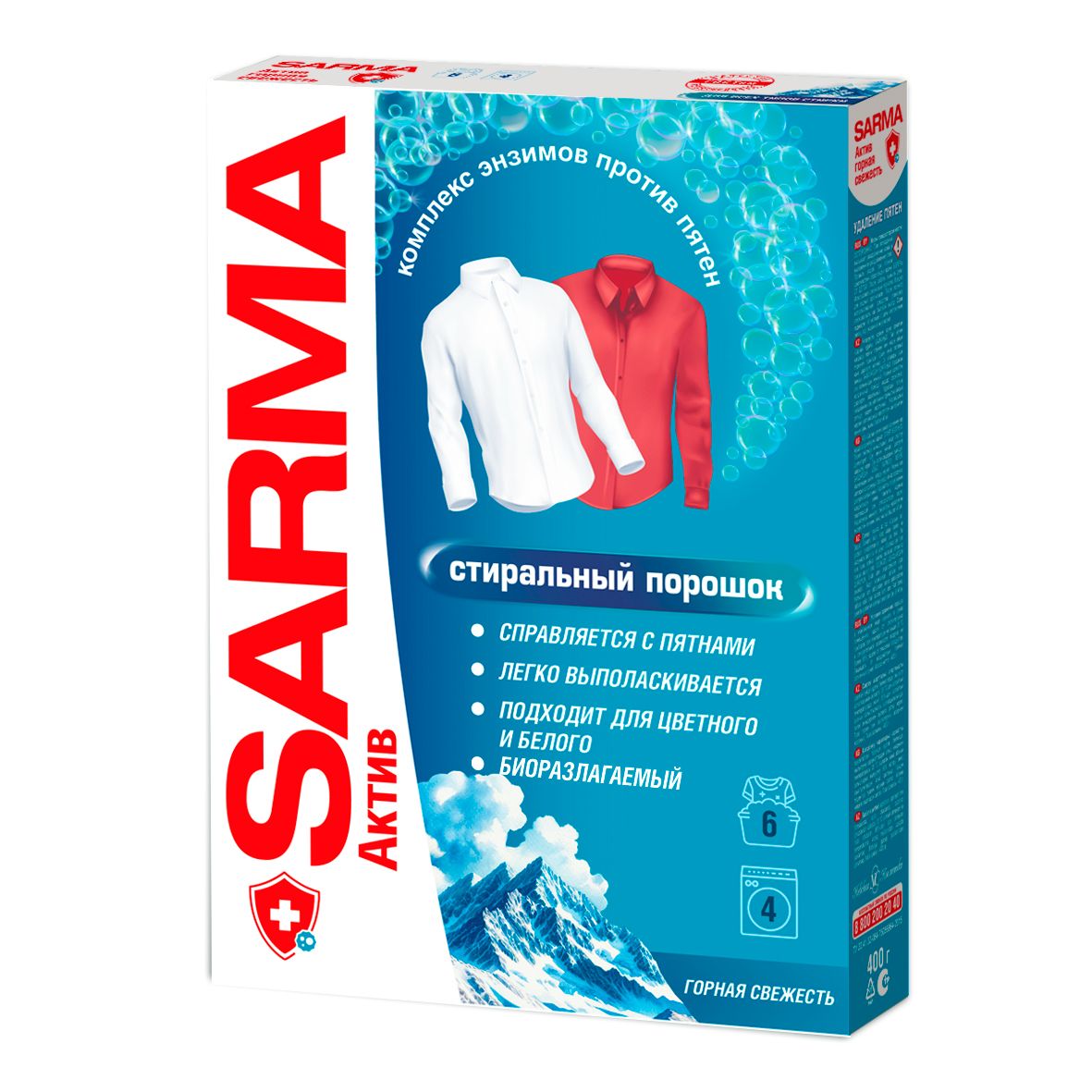 Сарма актив стиральный порошок автомат горная свежесть 400 г