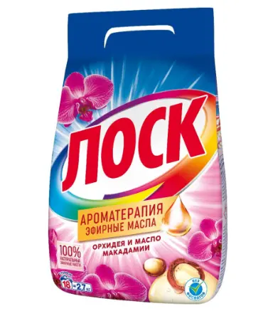 Стиральные порошки Лоск Ароматерапия Орхидея и Масло Макадамии – последнее поколение средств для стирки Лоск, которые подходят для стирки белых и цветных вещей.