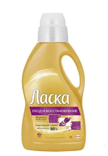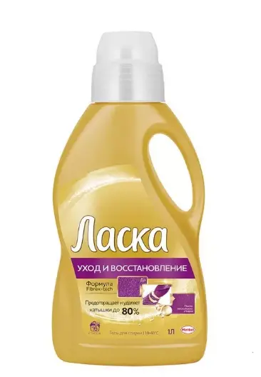 Гель для стирки ЛАСКА Уход и Восстановление создан специально для тканей, склонных к образованию катышков. Благодаря формуле Fibrex-tech ЛАСКА не только защищает новую одежду от образования катышков и ворсинок с первой стирки, но и обладает эффектом восстановления уже не новой ткани. Он удаляет катышки хлопковых и смесовых с хлопком тканей до 80% и предотвращает их дальнейшее появление. Эффект достигается после 20 стирок, что подтверждено результатами внутренних исследований ХЕНКЕЛЬ. Скажите «НЕТ» катышкам на любимой одежде с гелем для стирки ЛАСКА Уход и Восстановление! Основным преимуществом геля для стирки является его жидкая консистенция. Именно благодаря ей, гель, в отличие от стирального порошка, глубоко проникает в волокна ткани и качественнее удаляет загрязнения. Но помимо этого, такое средство для стирки используют для того, чтобы ткань была более мягкой и гладкой, переставая собираться в складки и тускнеть. Такой гель можно использовать при стирке повседневной одежды, нижнего, детского и постельного белья. Добавляется он в специальное отделение в отсеке для чистящих и моющих средств стиральной машины. Также универсальное средство для стирки не забивает трубы стиральной машины, что продлевает ее срок службы.