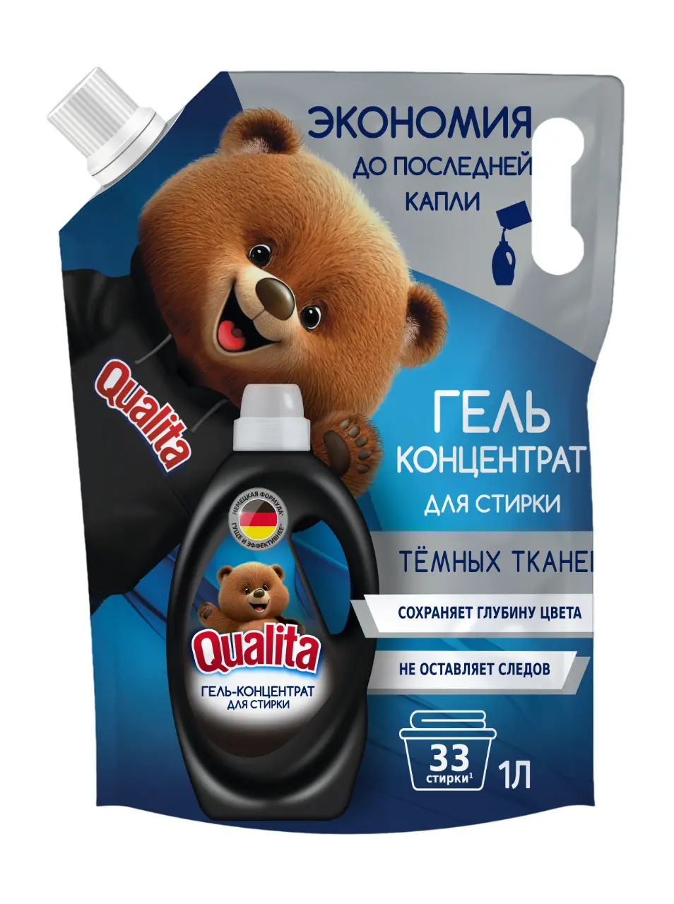 Qualita гель для стирки темного белья дой пак 1000 мл