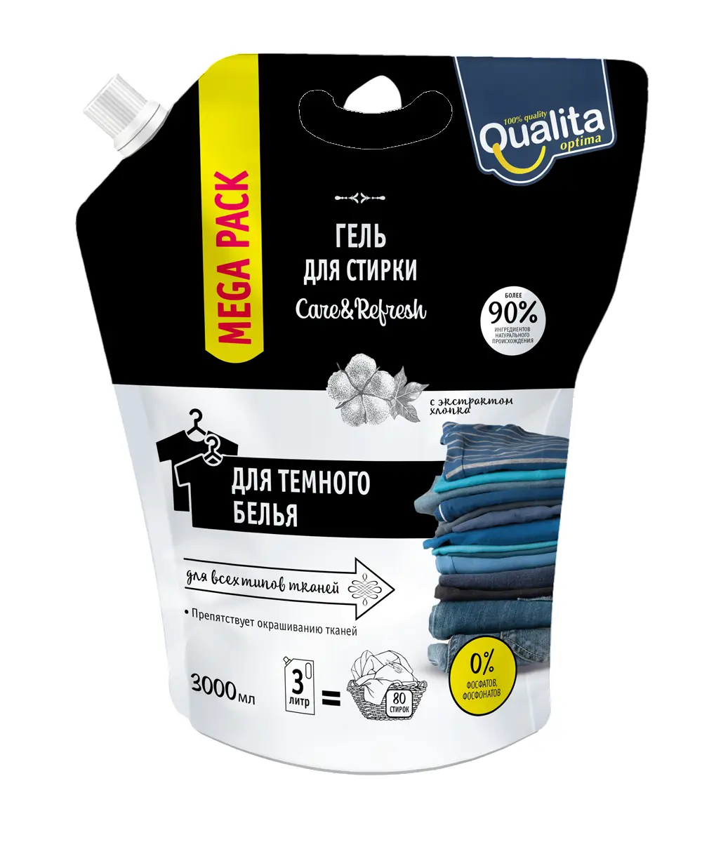 Qualita гель для стирки темного белья дой пак 3000 мл