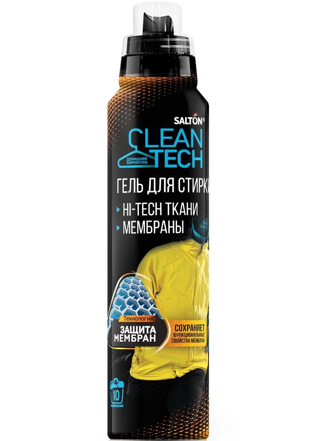 Одежда из мембранной ткани выручит в любую погоду: спасёт от дождя, послужит хорошей защитой от ветра, позволит коже летом дышать. Но уход обычными средствами может их испортить. Чтобы такие вещи служили долго, нужны специальные средства для стирки мембраны и спортивных вещей.Гель для стирки мембраны Salton CleanTech разработан для безопасного очищения изделий из мембранных и других высокотехнологичных тканей (ветровки, куртки, спортивная одежда, микрофибра, термобелье, спандекс, GoreTex). Средство для стирки мембраны Salton CleanTech содержит уникальную технологию ЗАЩИТА МЕМБРАН, которая сохраняет функциональные свойства мембранных тканей - после стирки ткань сохранит прежние надежные качества для вашей защиты. Средство для стирки мембранной одежды убережёт волокна ткани от глубокого проникновения загрязнений. Наконец, то, о чем вы мечтаете - водонепроницаемые и дышащие функции технологичных тканей останутся такими же, как при покупке. Смело отправляйтесь в поход, за город или просто покорять городские маршруты в любую погоду.