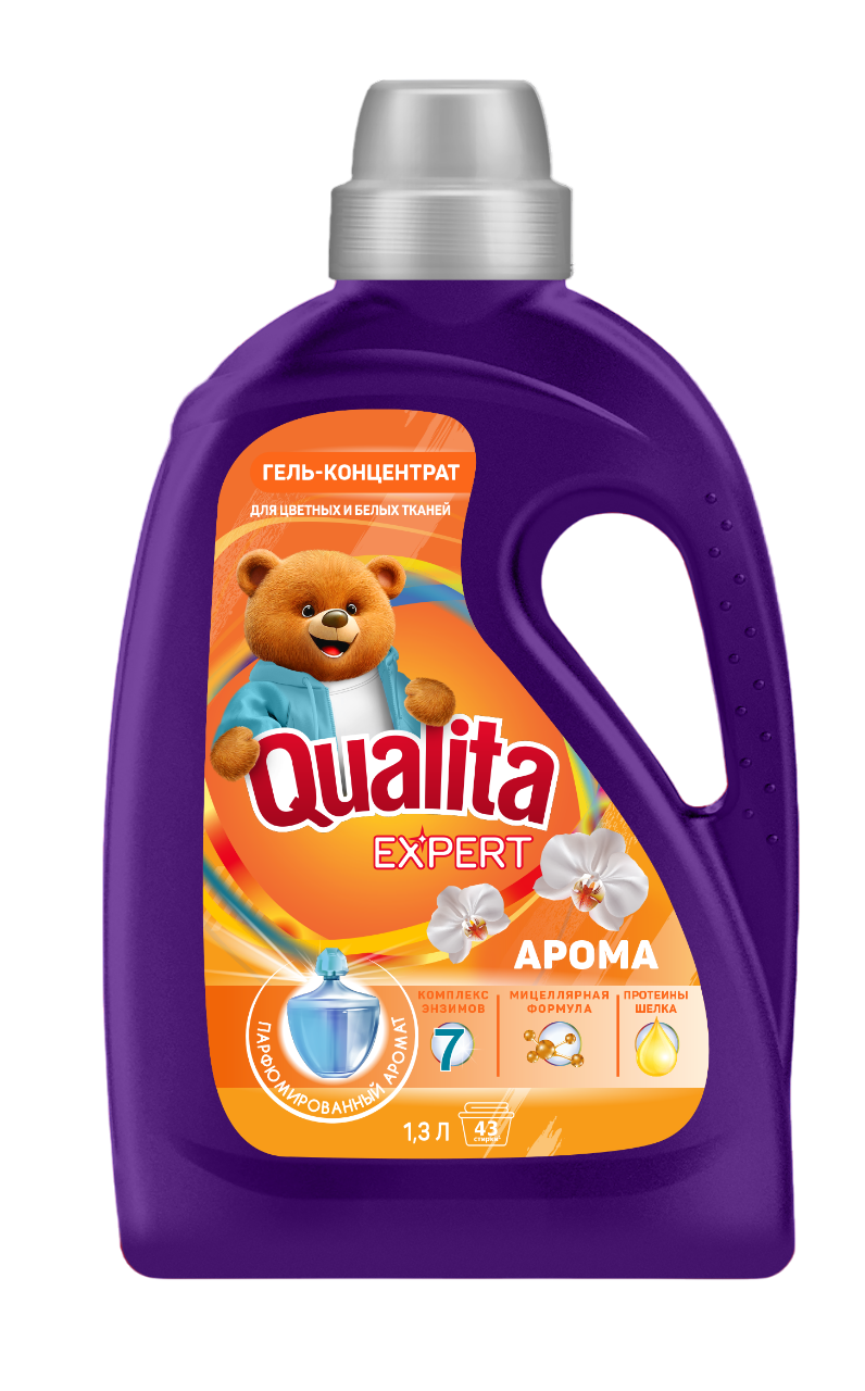 Qualita Expert гель концентрат для стирки цветных и белых тканей арома флакон 1300 мл