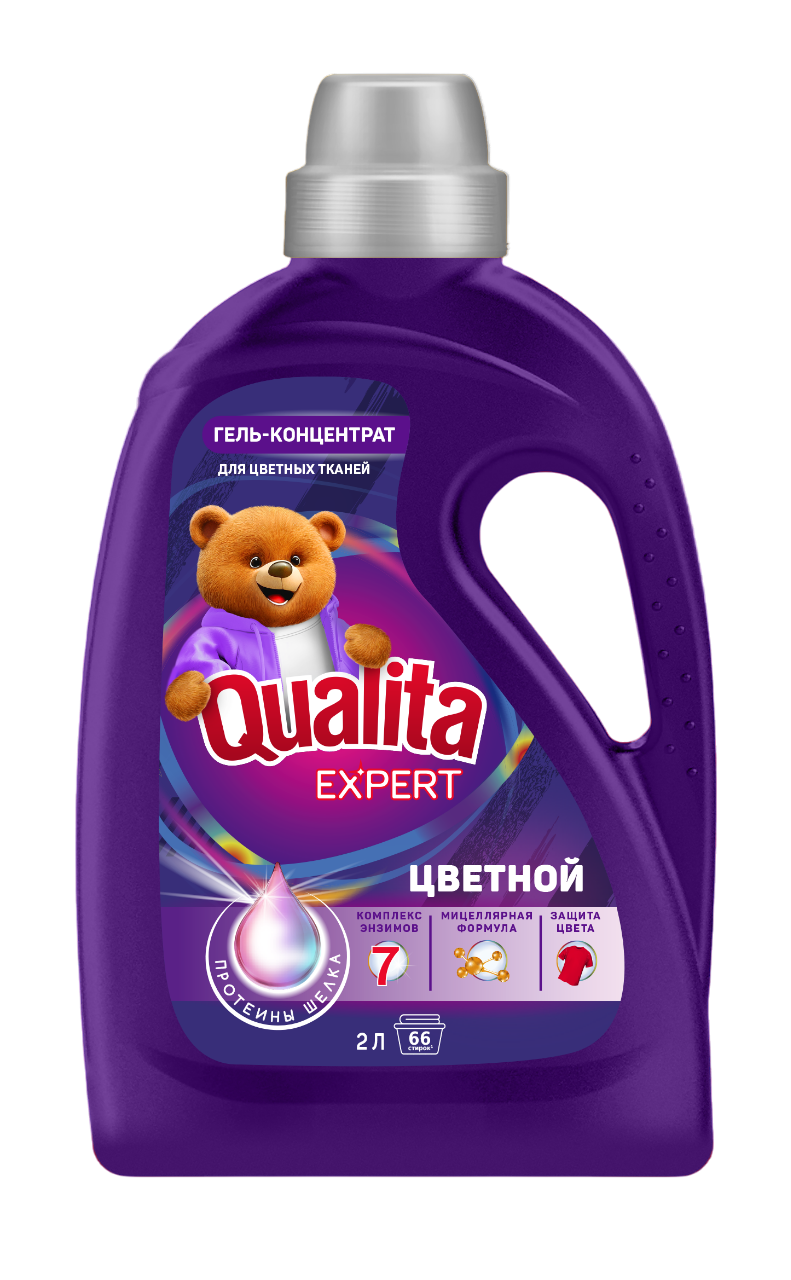 Гель-концентрат для стирки ЦВЕТНОЙ «EXPERT QUALITA»: не только стирка, но и уход за одеждой за счет протеинов шелка. Новая мицеллярная формула эффективно удаляет сложные пятна благодаря комплексу 7 Энзимов, который борется с семью типами загрязнений. Сохраняет структуру ткани и глубину цвета. А во время стирки, ваши вещи получают дополнительный уход, за счет протеинов шелка. Они глубоко проникают в структуру волокон, придают блеск, повышают эластичность и упругость ткани, а также, протеины шелка создают эффект антистатика. Разработан специально для стирки цветного белья.