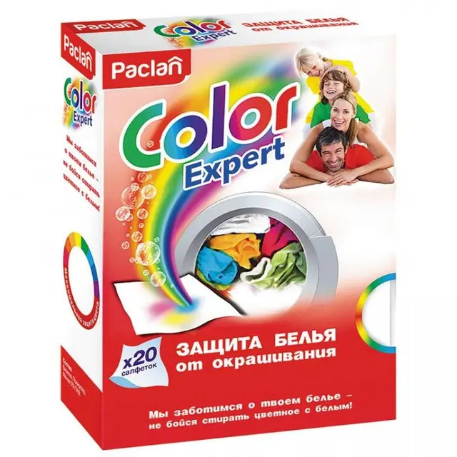 Одноразовые салфетки Паклан Колор Эксперт надежно защищают белье от окрашивания, линьки и серого оттенка в процессе стирки. Они содержат специальные компоненты, которые действуют по принципу ловушки, притягивая лишние красители цветного белья и не допуская нежелательного окрашивания во время смешанной стирки.