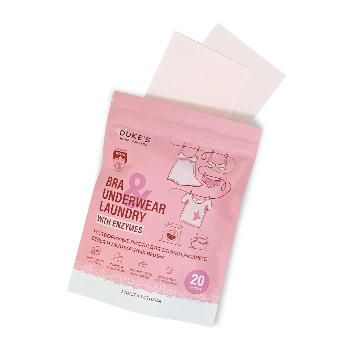 Dukes home wonders растворимые листы для стирки нижнего белья и деликатных вещей аромат роза 20 шт