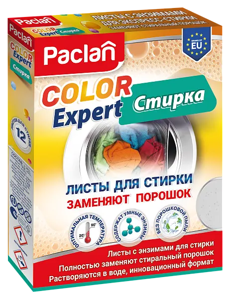 Paclan листы пластины для стирки с энзимами color expert 12 шт
