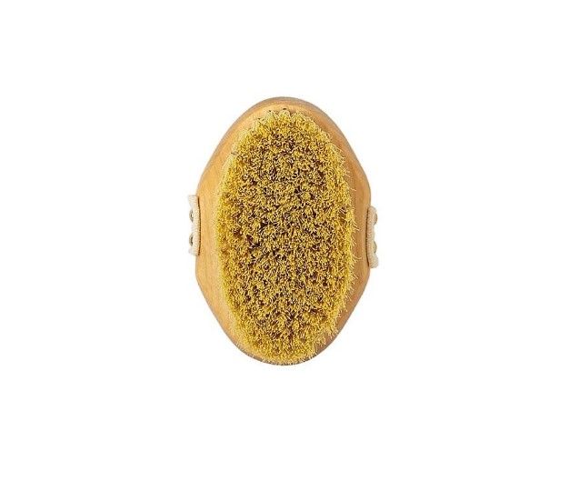 Изготовлена из березы и щетины из натурального волокна Тампико (кактус). Щетина средней жесткости. Корпус лёгкий, а длинная ручка позволяет самостоятельно массировать все участки тела. Используется перед душем, заменяет скраб. Разогревает, массирует, очищает кожу и удаляет ороговевшие частички. Улучшает кровоток, обменные процессы, снимает отечность, уменьшает проявления целлюлита. Повышает эффективность косметических средств. Интенсивность воздействия можно регулировать самостоятельно. Массаж такой щёткой занимает не более 10-15 минут. Нельзя применять при поражении кожи и открытых ранах. С осторожностью массируются участки расположения лимфоузлов.