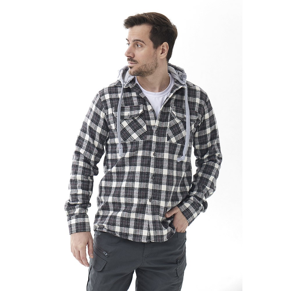 Обратите внимание, модель маломерит на один размер. Мужская рубашка- куртка в клетку. Модель прямого кроя с длинным рукавом и съемным капюшоном. Мужская рубашка сочетается с джинсами, штанами карго, брюками. Идеально на зиму, весну, осень и лето для активного отдыха, повседневных образов. Универсальный крой рубашки подходит мужчинам, женщинам. Рубашка изготовлена из фланели. Это ткань из 100% хлопка с плотным переплетением волокон. Материал отличается прочностью и