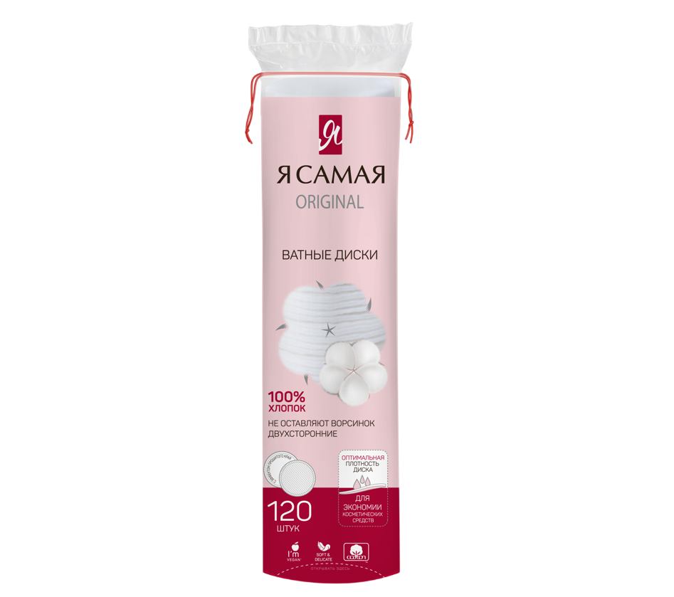 Ватные диски подходят для использования в шеи и лица. В состав входит 100% хлопок обладающий высокой впитываемостью, эффективно удаляющий излишки косметических средств. Ватные диски являются двусторонними: одна сторона гладкая для нанесения уходовых средств, другая с тиснением - для эффективного удаления макияжа. Не оставляет ворсинок. Удобный формат упаковки с веревочками.