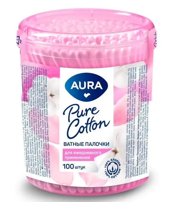 Ватные палочки Aura предназначены для косметических и гигиенических целей. Ватная головка сделана из 100% хлопка, который отлично впитывает влагу и не оставляет ворсинок. Эластичный пластиковый стик на котором прочно закреплен хлопок обеспечивает мксимально комфортное использование. Палочки гипоаллергенны, хорошо удаляют загрязнения, подходят для нанесения и снятия макияжа.