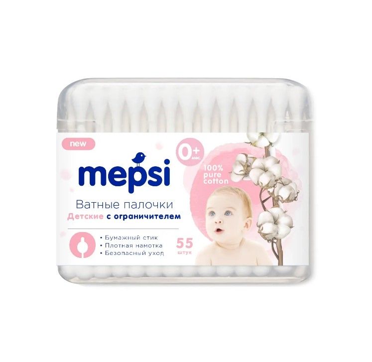 Mepsi детские ватные палочки с ограничителем 55 шт