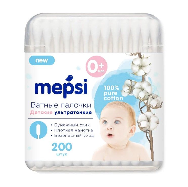 Mepsi детские ватные палочки ультратонкие 200 шт
