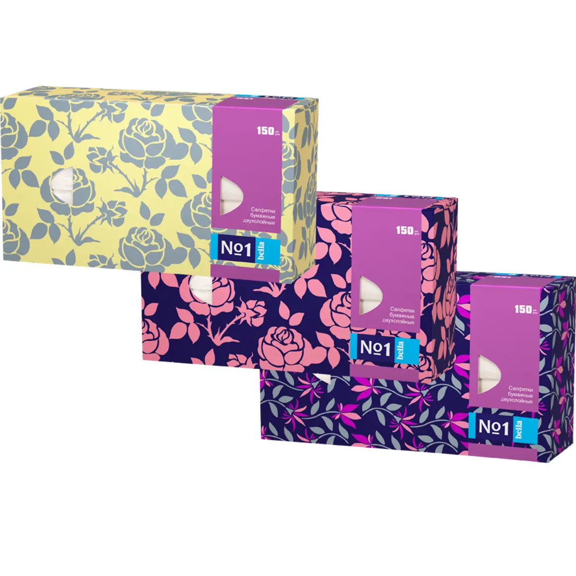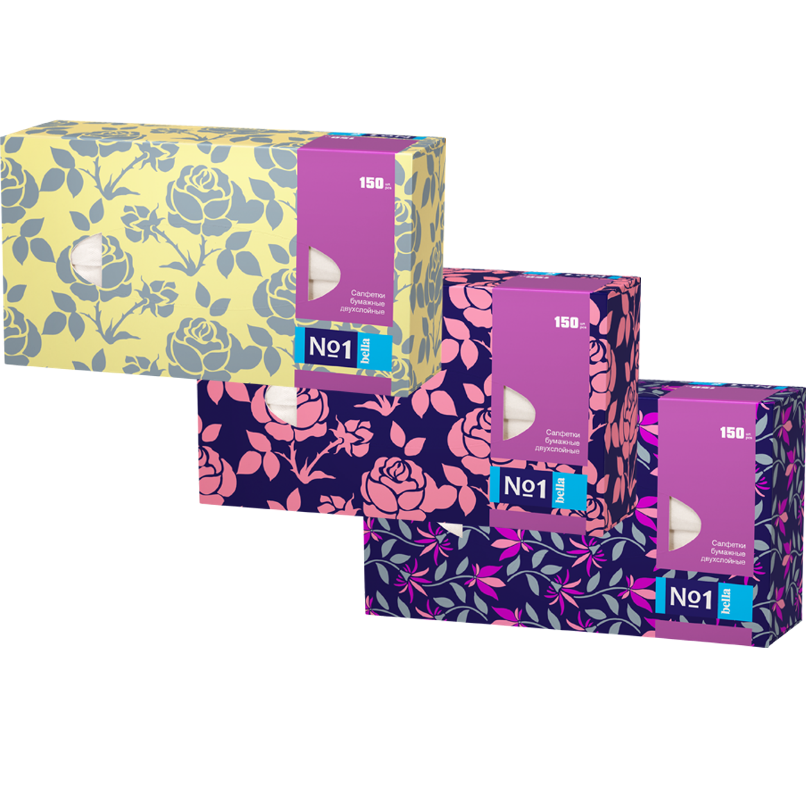 BELLA Салфетки универсальные bella №1 двухслойные (микс, 3 дизайна), 150 шт.уп. (Сибирь)