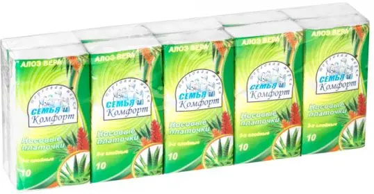 Семья и Комфорт платочки бумажные 3 х слойные алоэ не менее 1 спайки = 10 пачек 1шт = 1 пачка