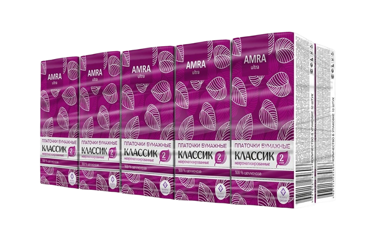 Amra платочки бумажные двухслойные белые неароматизированные 1 уп по 10 шт