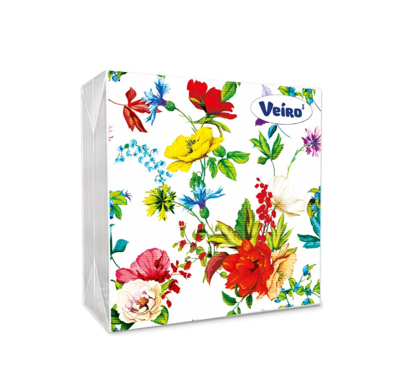 Veiro салфетки 3 слойные с рисунком цветочная поляна 33*33 20 листов
