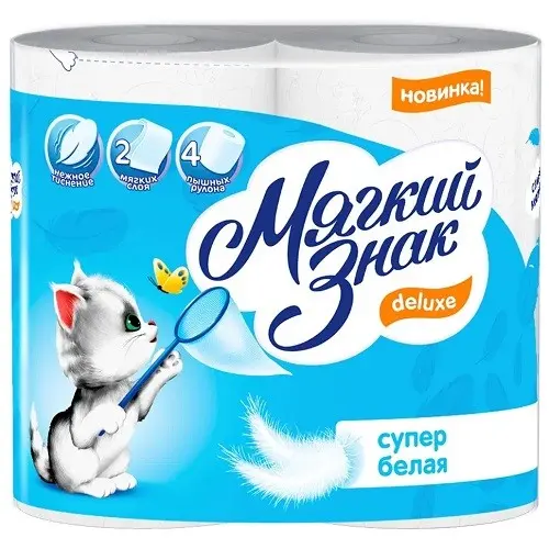 Мягкий Знак туалетная бумага 2-х слойная белая 4шт
