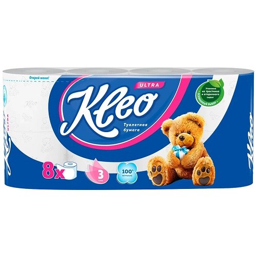 'Kleo' Туалетная бумага 3х сл.Ultra 8рул. (белая)