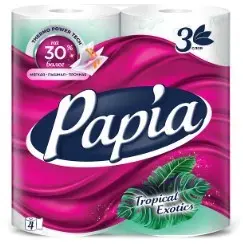 Papia туалетная бумага белая с ароматом тропическая экзотика и рисунком трёхслойная 4 шт
