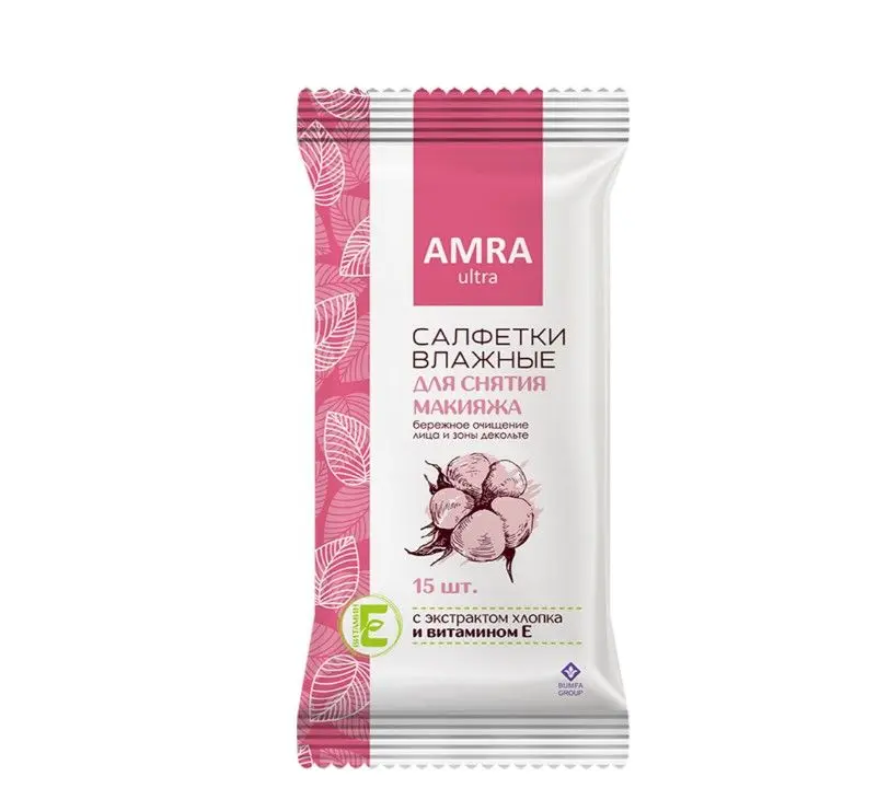 AMRA салфетки влажные для снятия макияжа нежно и деликатно удаляют макияж. Экстракт хлопка смягчает, увлажняет и тонизирует кожу. Салфетки деликатно очищают кожу, дезодорируют и дарят ощущение чистоты и комфорта