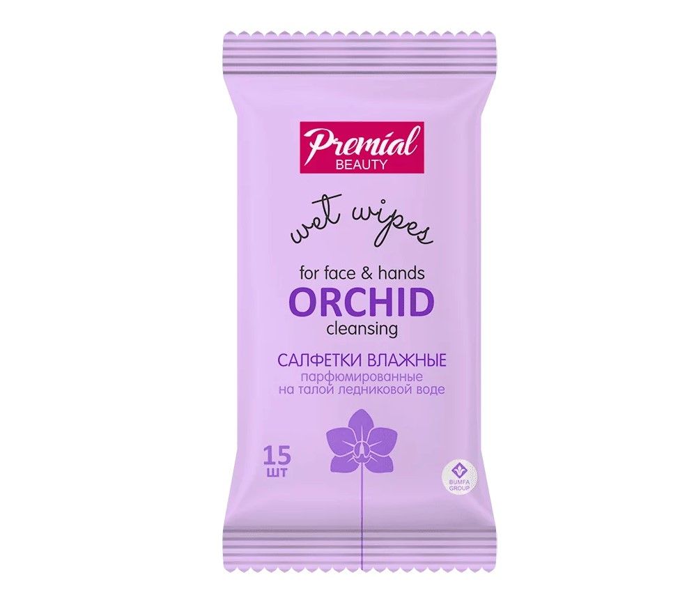 PREMIAL La fleur влажные салфетки с ароматом орхидеи предназначены для гигиены рук и лица. Салфетки деликатно очищают и одновременно ухаживают за нежной кожей. В состав лосьона входит витамин Е, который оказывает дополнительное увлажнение и питание кожи