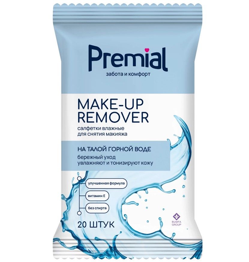 Premial салфетки влажные для снятия макияжа 20 шт