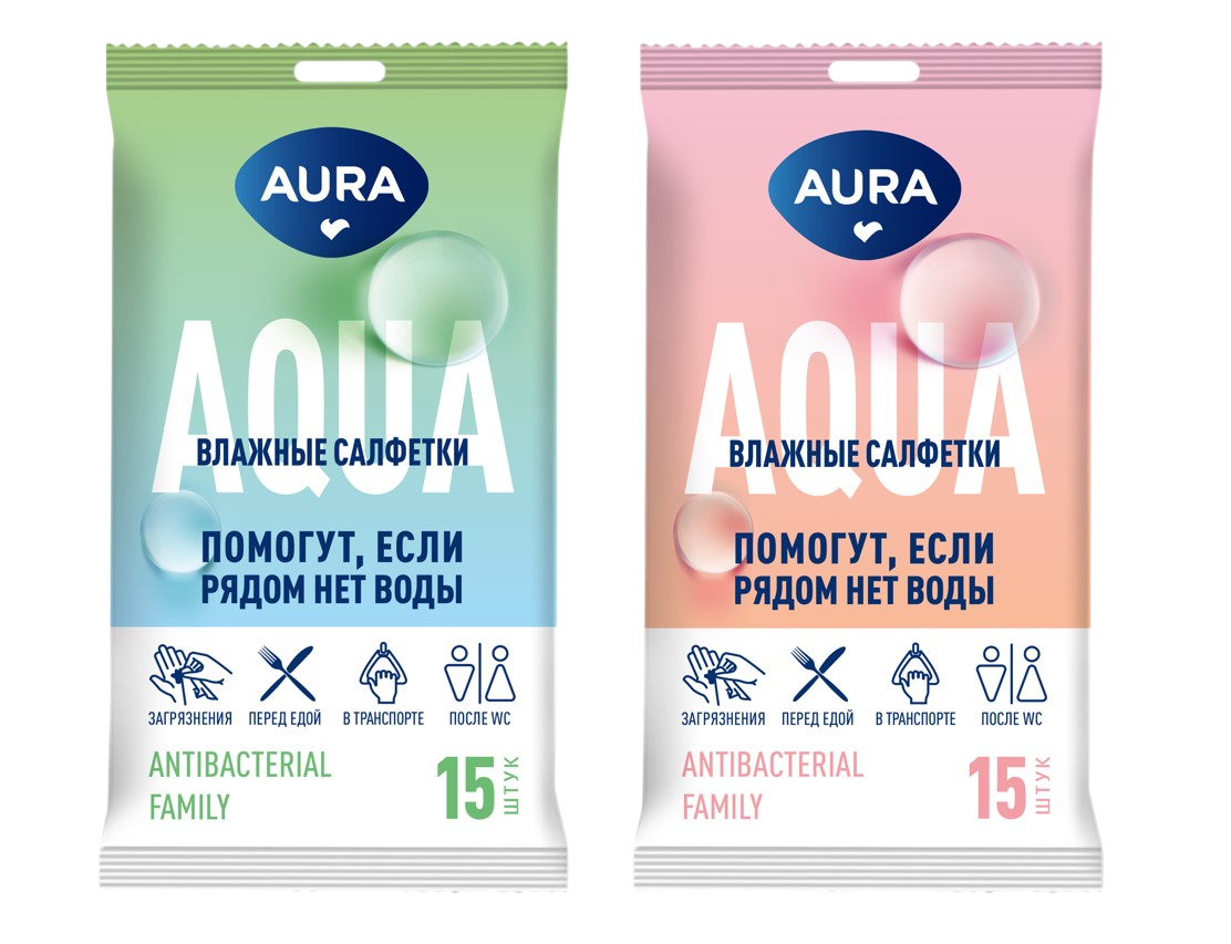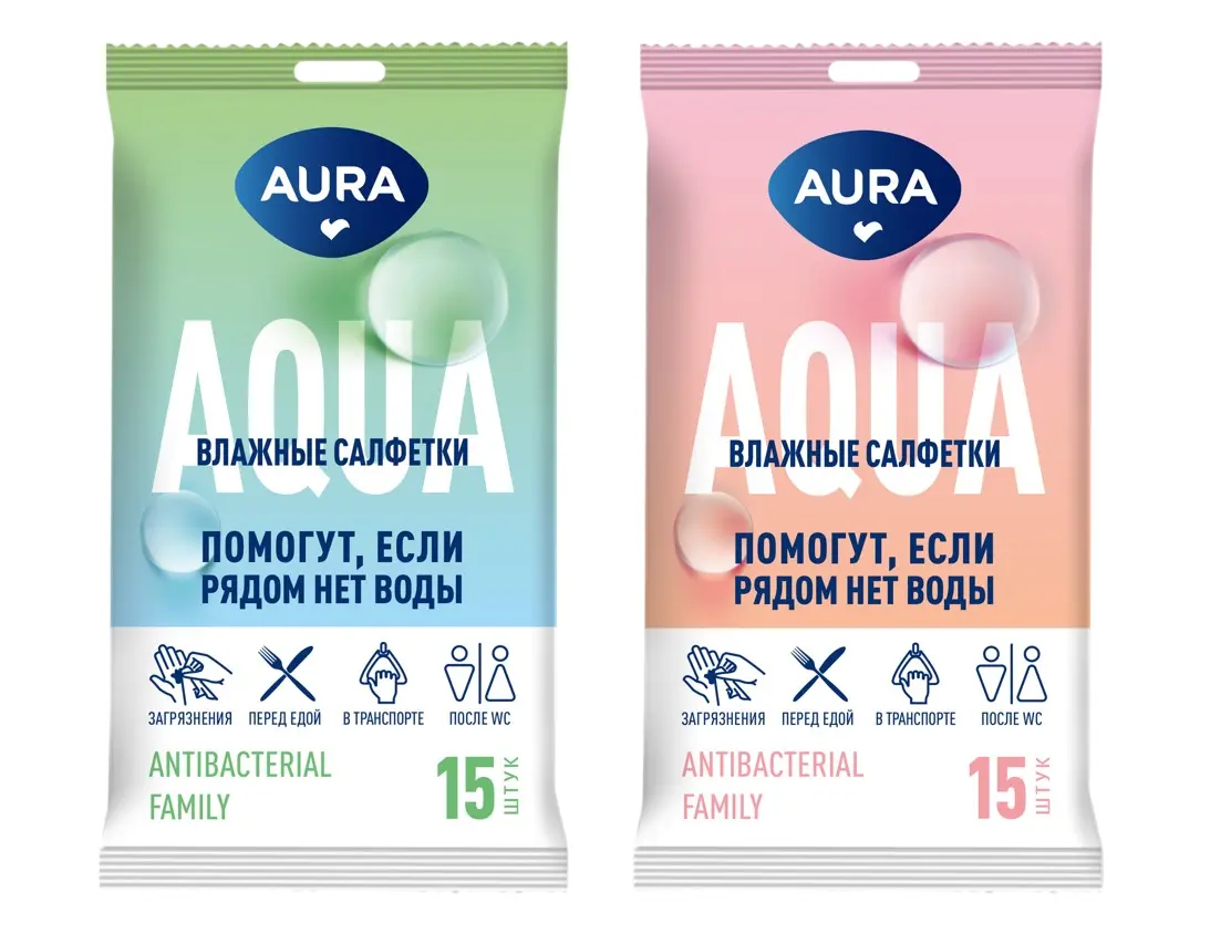 Aura влажные салфетки с антибактериальным эффектом beauty family 15 шт