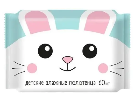 Влажные полотенца №60 детские универсальные с ромашкой алоэ вера и витамином e