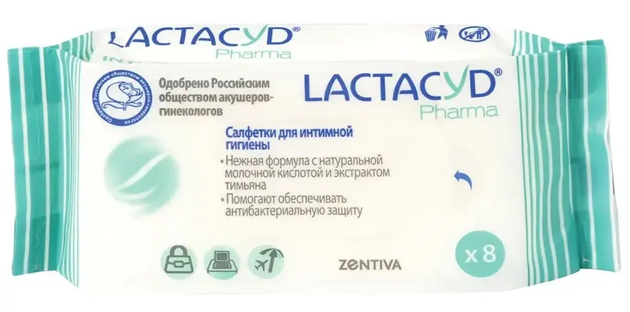 ЛАКТАЦИД фарма салфетки с экстрактом тимьяна салфетки для интимной гигиены упаковка № 8