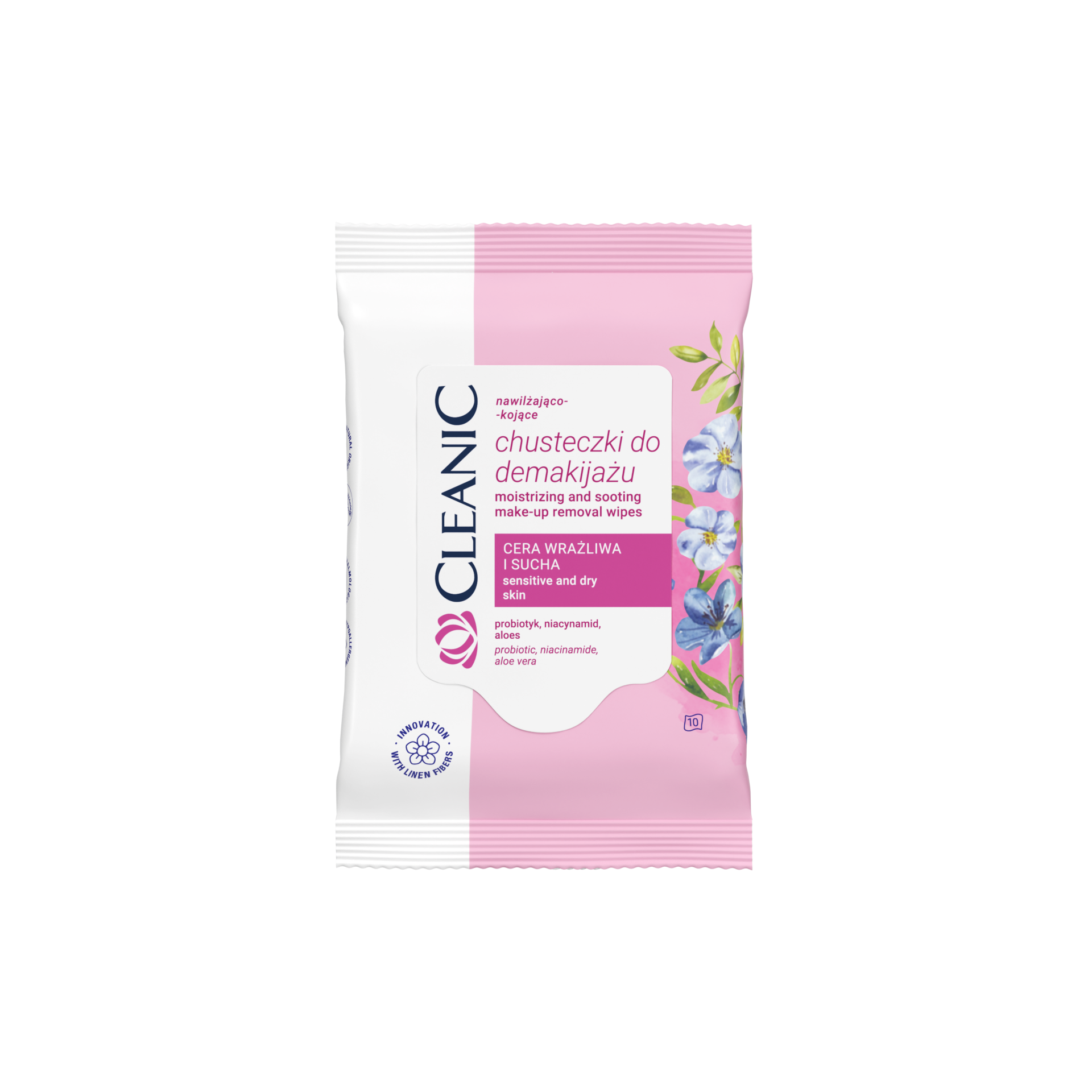 Cleanic предлагает первые на рынке влажные салфетки для снятия макияжа, содержащие волокна льна, которые способствуют снижению количества бактерий. Увлажняющие и успокаивающие cалфетки с пробиотиками, ниацинамидом и алоэ вера – для чувствительной и сухой кожи.